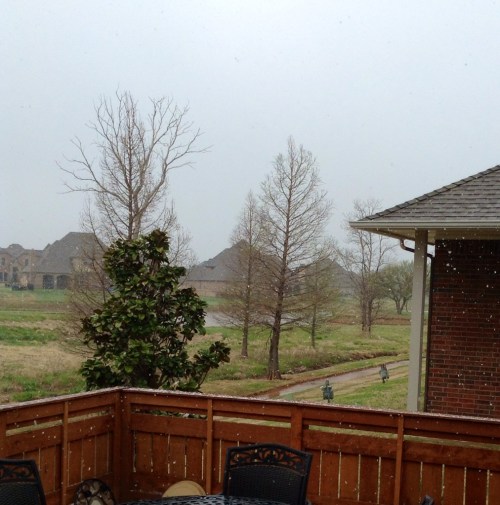 I know it doesn't look much – soft big flakes blowing in – settle for a little and then melt.