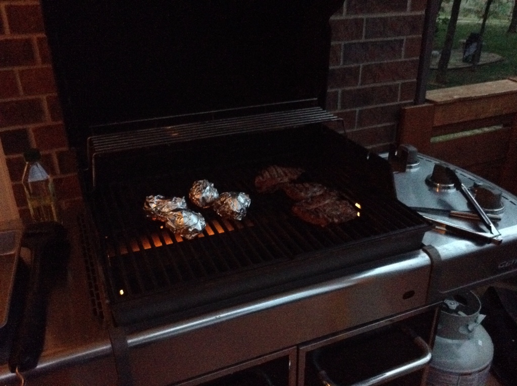 Here we go, storms a comin'!! But we have fired up the barbie (the grill) for the visitors, along with spuds and salad.