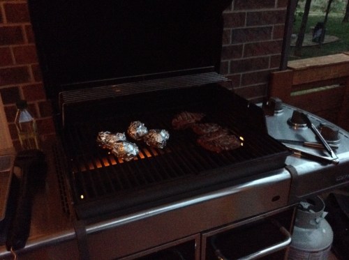 We are eating outside, I need to get a lantern for the table and some fairy lights strung up! It's a little dark given the clouds rolling in. Good times!!