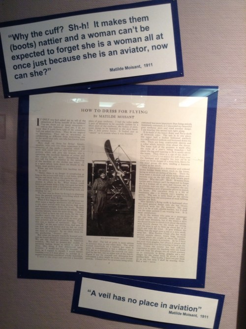A few of the women went on to design appropriate women's flying clothing, like flying suits, jackets and luggage (Amelia Earhart) and the “Foltz-Up” (Edith Foltz), a skirt that folded up into a tunic top whilst flying and then could be quickly converted back to a skirt over your britches when you disembarked from the plane!
