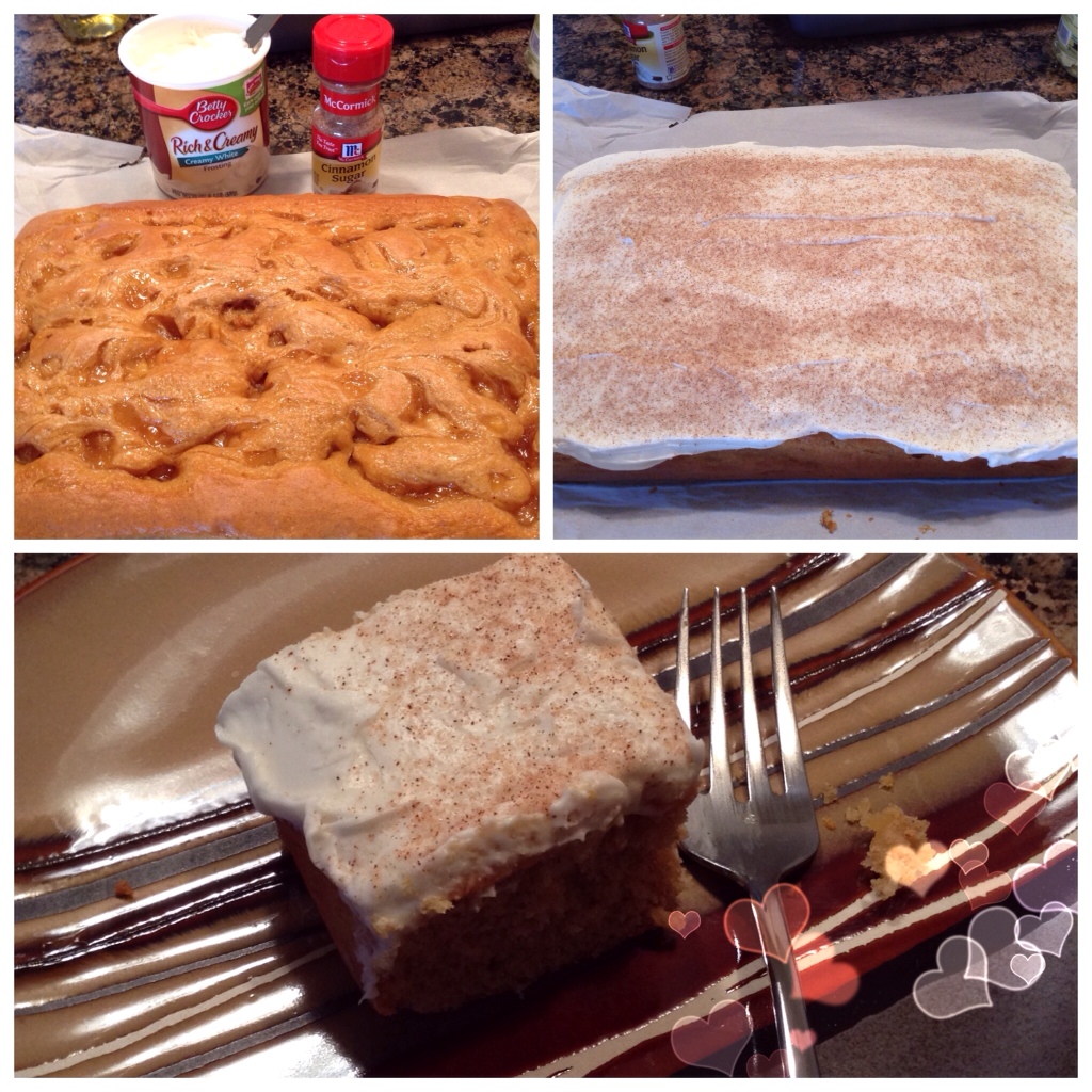 Now I had to disappoint Melody when she asked about how I 'made' the icing…..I didn't! It was a Betty Crocker one, whip it up a bit and spread it on. Must say it did taste pretty damn good and one could be forgiven to think it was home made. Sprinkle a bit of cinnamon sugar on and it's done!