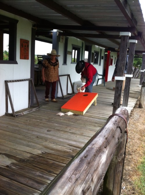 Thurs night, rain, Friday morning, rain, couple of showers on and off through the day but side matches were still held, washers game in the barn and corn toss on the porch of the first few ranges. Great fun!