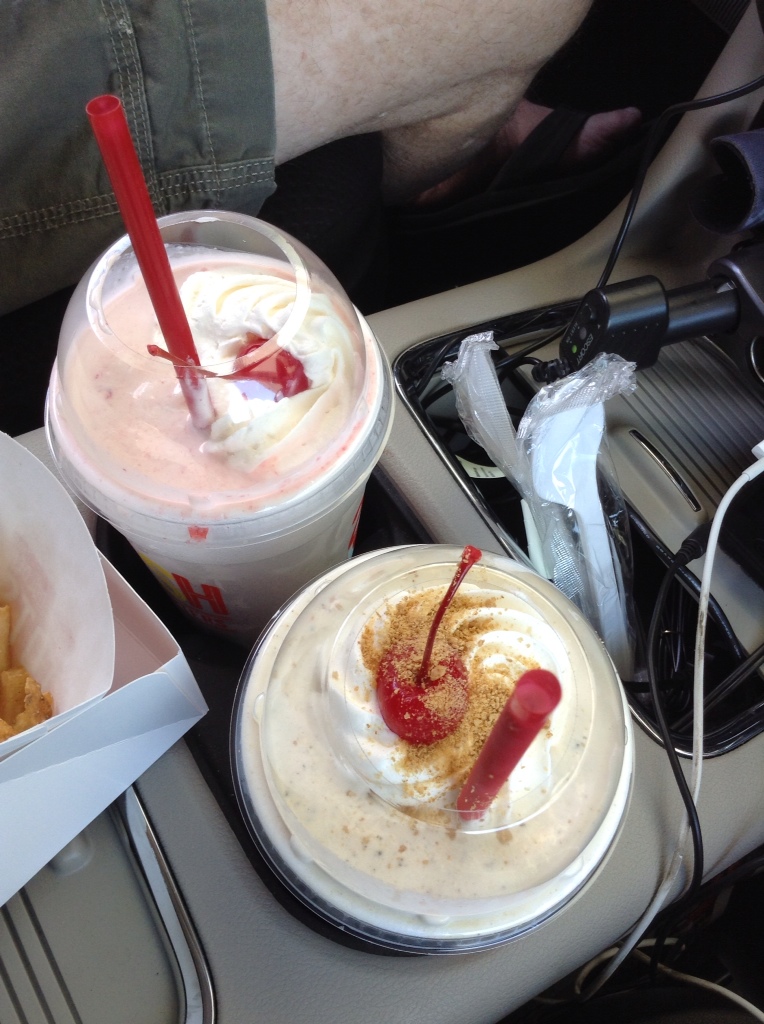 Back in the car and we are back on Hwy 69 now and heading up to Pittsburg, Fort Scott – every now and then you just have to Sonic! Hot dog and Oreo Cheesecake Shake for me and Strawberry Shake for Jack. Yum!