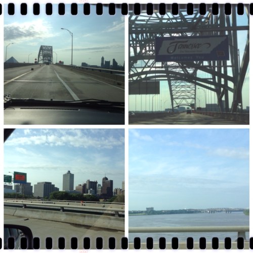 Heading into Memphis area, I thought we may have been in Egypt for a minute! (What is that pyramid building?) Welcome to Tennessee as we come onto the bridge. Normally we have come across the twin bridges down the Mississippi River as we've headed South, can you see them in the distance?