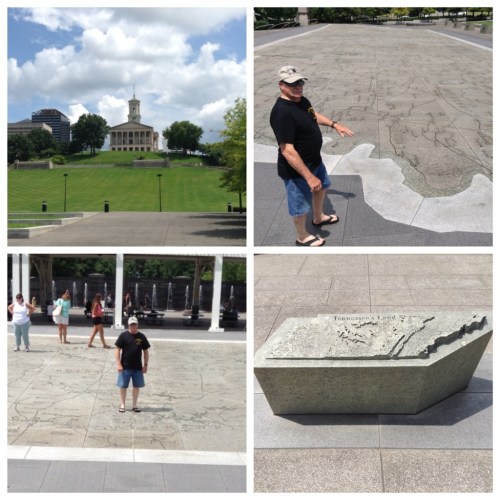 Along the trolley tour we also stopped briefly at the Bicentennial Mall where there is a huge Tennessee state map and information of the history with a spectacular view up the hill to the State Capitol. We will go there again tomorrow.