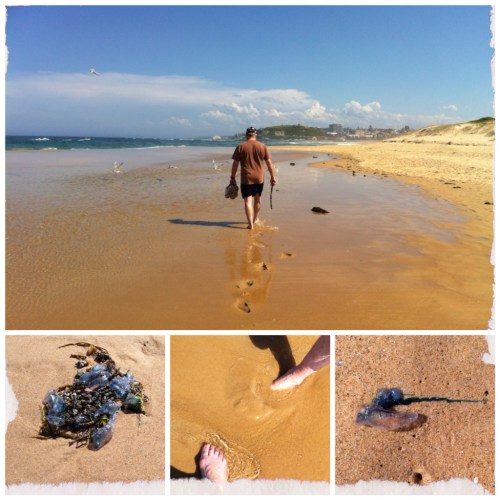 Plenty of blue bottles washed up on the beach, you don't want to be getting stung by these that's for sure!
