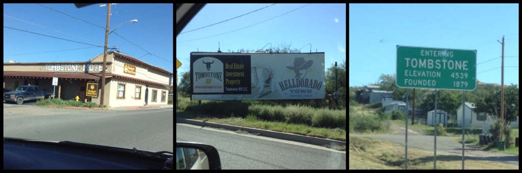 Three hours left til we reach Tombstone. Time to finish pinning lace to bodice and get it sewn on maybe even the buttons will be on by the time we get there!