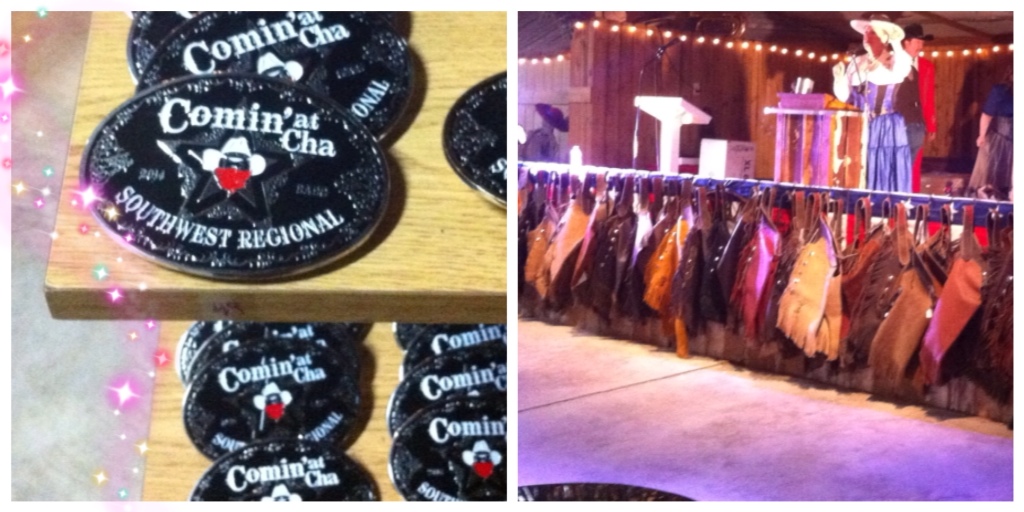 With the buckle, the first place prize for category winners was a pair of chaps with the category stamped and painted into the belt and had the Bar 3 brand on the leg of the chaps. What a thoughtful and unusual prize!