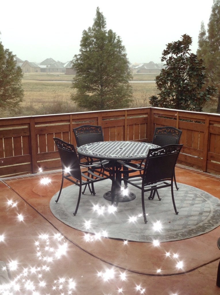 The outdoor table is now beginning to look like a lattice work pie topped with a dusting of icing sugar!