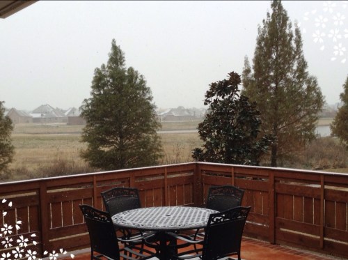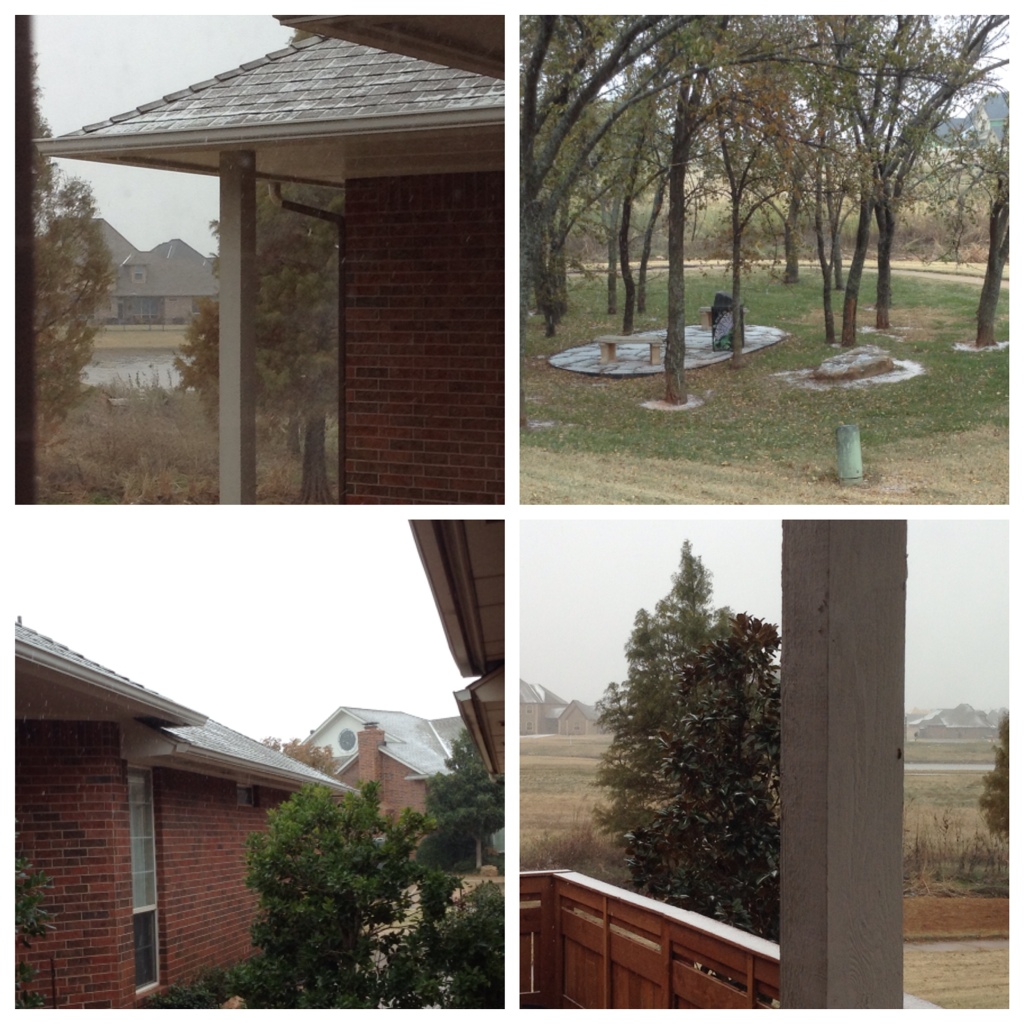 P.S. Since typing this and playing with photos that don't look like much – the flakes are getting bigger and there's more white stuff!!!
