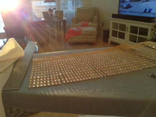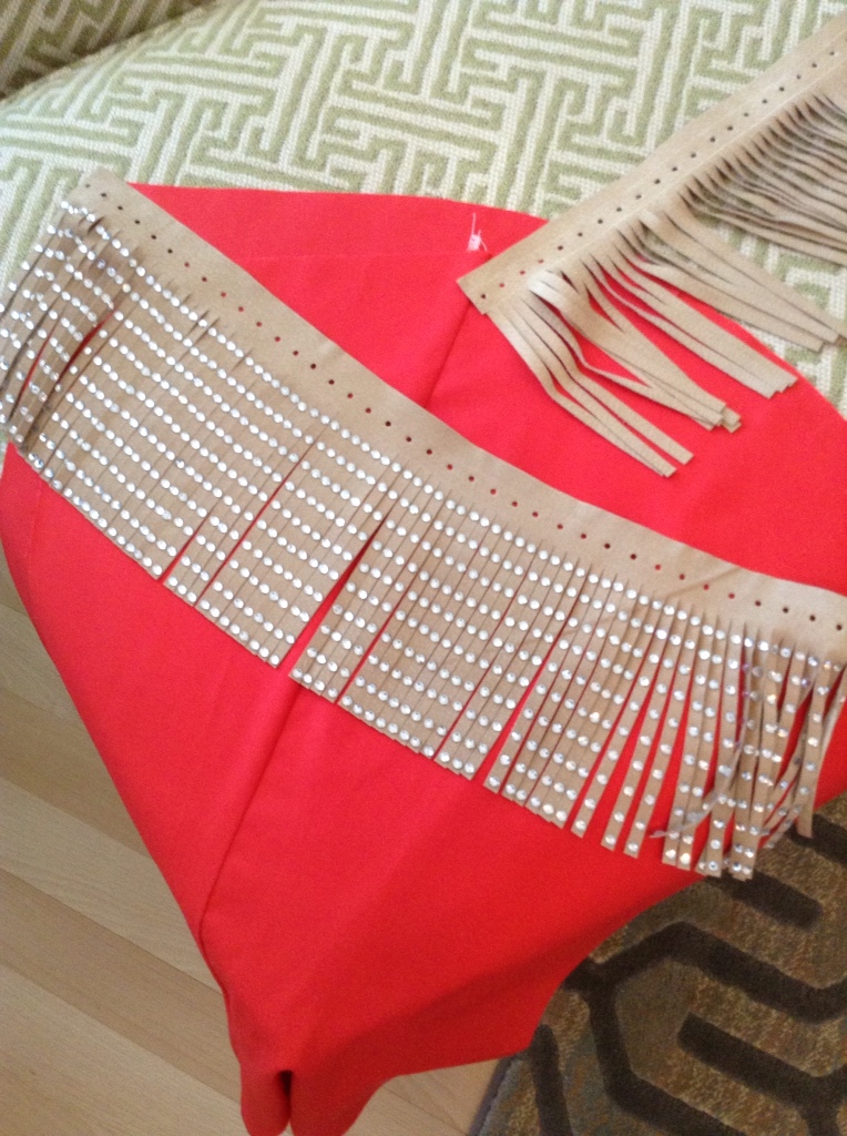 To date besides cutting out the fabric, I have hand cut 758 qtr inch pigskin fringe strips, hole punched the leather 346 times.