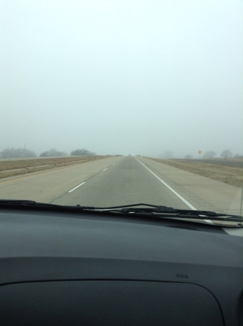 It's a bleak looking morning 42F and as we head west, hit fog just before we leave OK state line and hit the Texas panhandle.