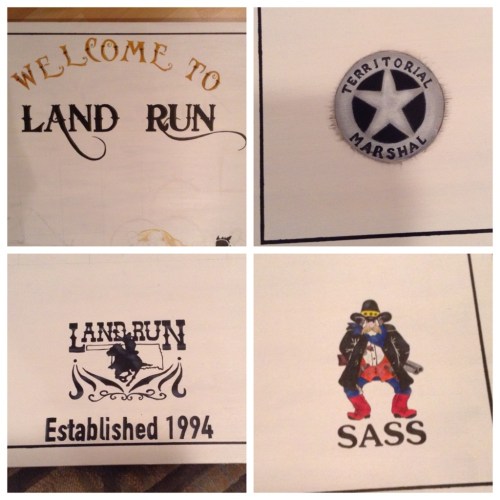 In amongst the painting of props and revamping the Mercantile, a request and discussion ensued about the 4' x 4' Land Run sign needing to be replaced.