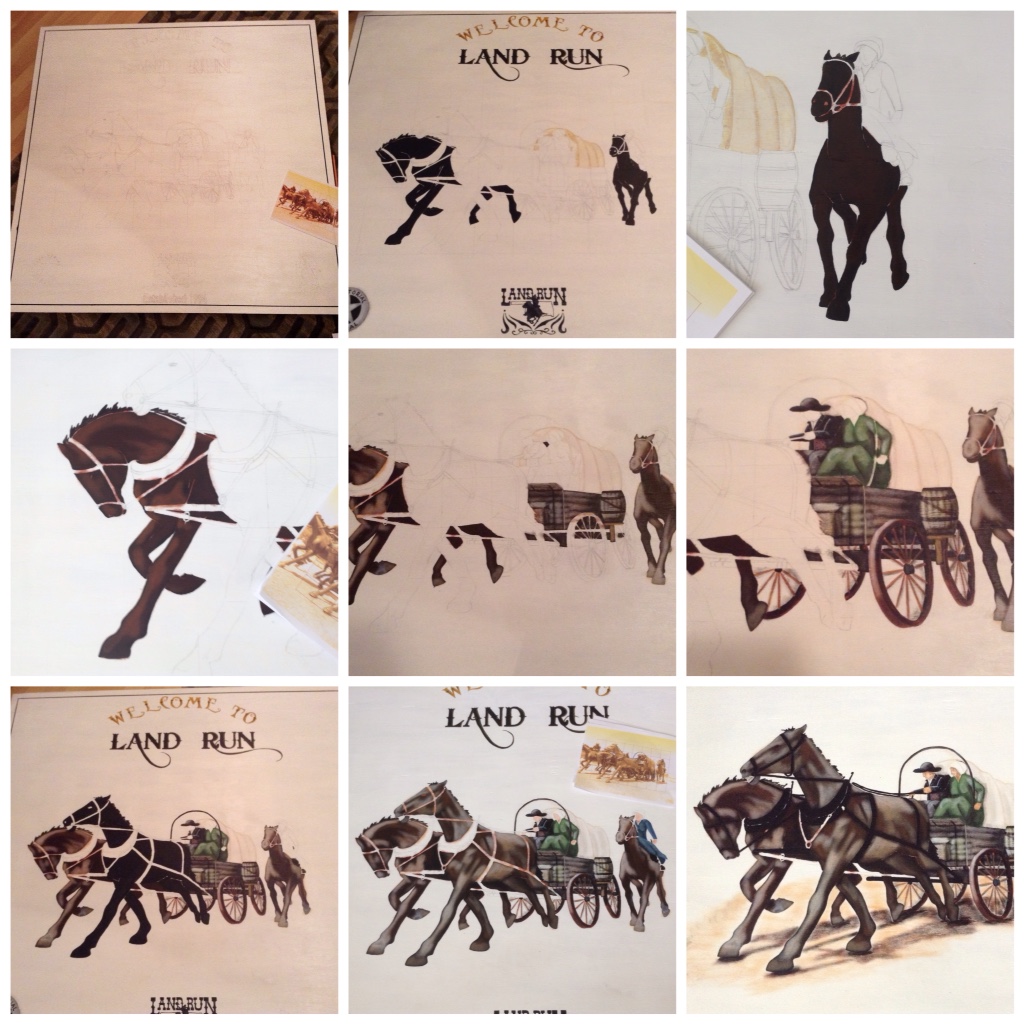 Once I drew it all out it, it was time for painting. The results were pleasing and feel pretty good that I actually got them looking like horses! Bonus!