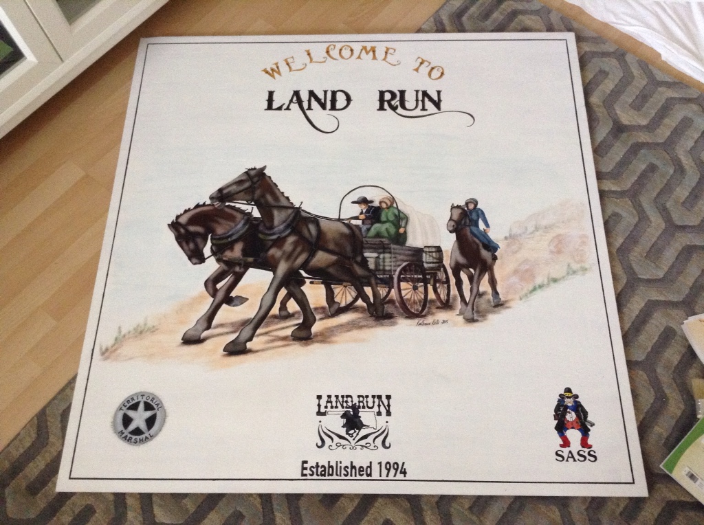 In amongst the painting of props and revamping the Mercantile, a request and discussion ensued about the 4' x 4' Land Run sign needing to be replaced.