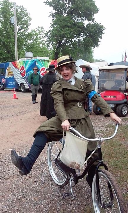 I had worn my 1890’s wheel woman costume! Had so much fun on the revamped ‘faux antique’ bicycle. Riding up and down the range all day syncing scores into the iPad and back to the office.
