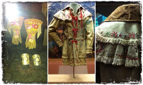 Then it was on through the Indian artefacts of beautiful headdress, fanciful bead worked or embroidered clothing, gauntlet gloves and other items. Could take photos now without flash. Found some gloves for a classic cowgirl ensemble! Think I might have to make my own though.