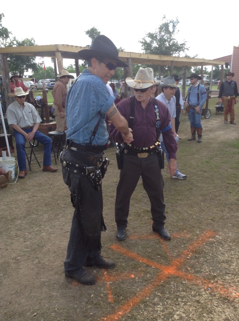 We caught up with some friends for barbecue that night at the Chisholm Trail BBQ joint across the road from the motel. Slick Dale Six-Guns (a new shooter and active serviceman) joined us with his Mum (Mom) and I guess we introduced him to some cowboy rot and Aussie nonsense! Lol!