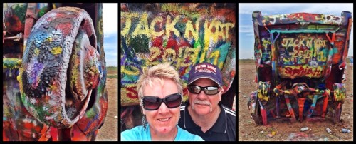 We took turns in driving and got through to the cars in the dirt just west of Amarillo. A Route 66 tourist attraction for many years we have finally, after a few times of driving straight past, managed a stop!