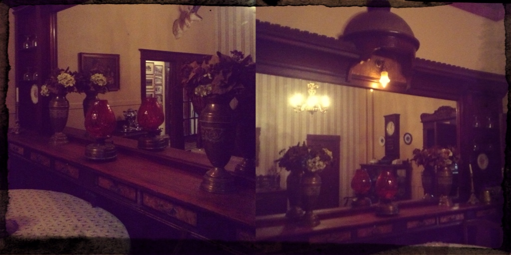 One of the dining rooms leading through to the downstairs Hotel rooms has another magnificent full wall length mirrored sideboard.