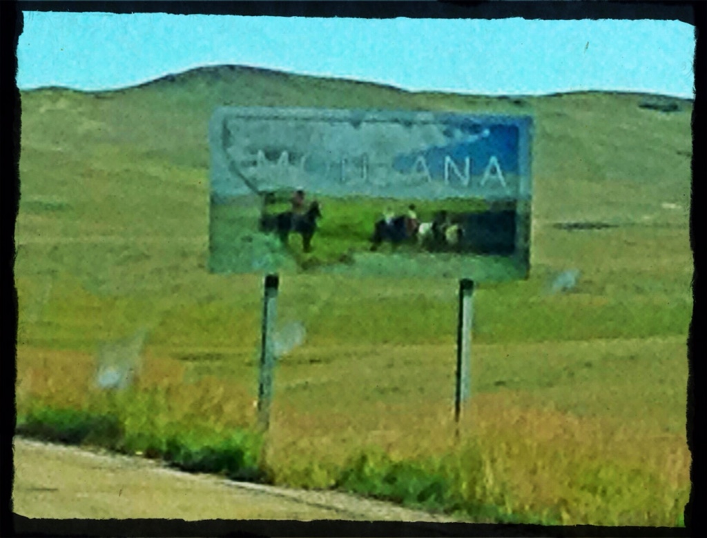 In about 20mins flat, through rolling Wyoming hills one side and the Bighorn Mountains to the left we reached the border for Montana.