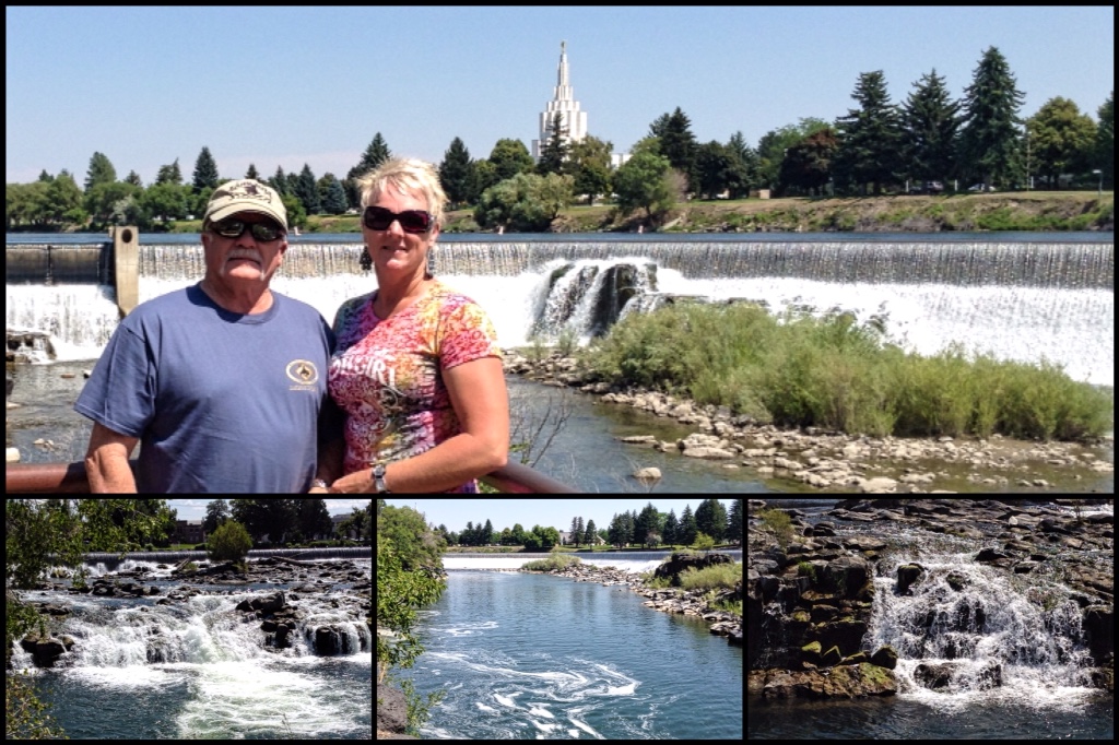 We left Jackson this morning and made a brief detour through Teton Village. The we headed across the border into Idaho and hit Idaho Falls by lunch time. They are quite beautiful and a neat little roadside park. These falls are right in the centre of town basically. A gorgeous spot for a workers lunchtime stroll or sit and eat.