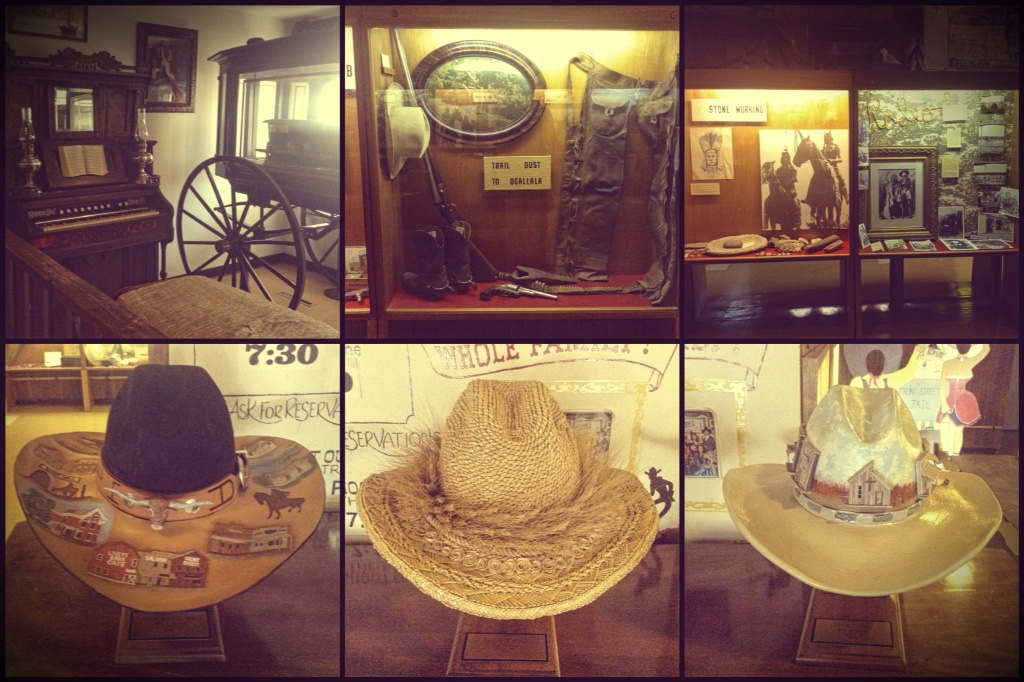 There is a free museum attached which houses anything from the old west, early land owners, World War I etc. these hats caught my eye but I couldn't find why they came into being. Cowboy Country Mural, Harvest Gold and Brim Town.