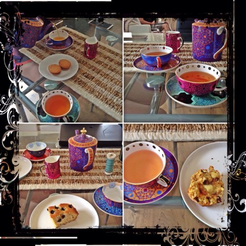 We had Ginger Spice Tea, Banana Bake Tea, Black Rose Tea, Sencha Vanilla and Turkish Apple Cinnamon Tea (pink in colour and a favourite) and last but not least Shimmer Punch. All coupled with a spectacular blueberry tea cake or date scones.