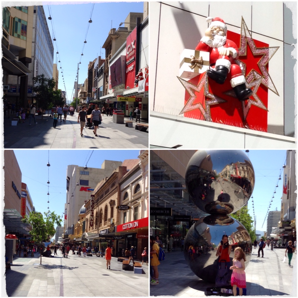 Then we wandered down through the Rundel Street mall with its buskers, early signs of Christmas for the upcoming pageant and people scavenging cans and bottles. (It's still a 10c return deposit in SA for cans and glass bottles)