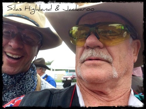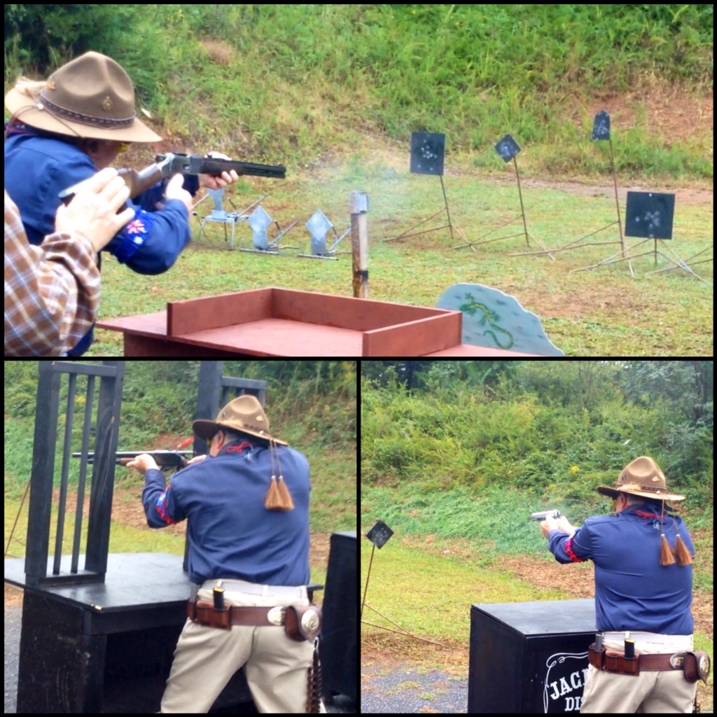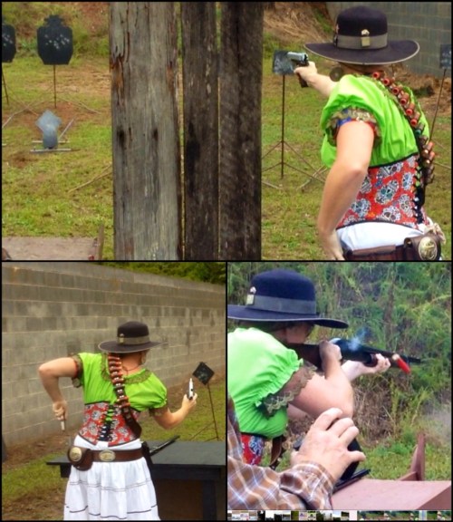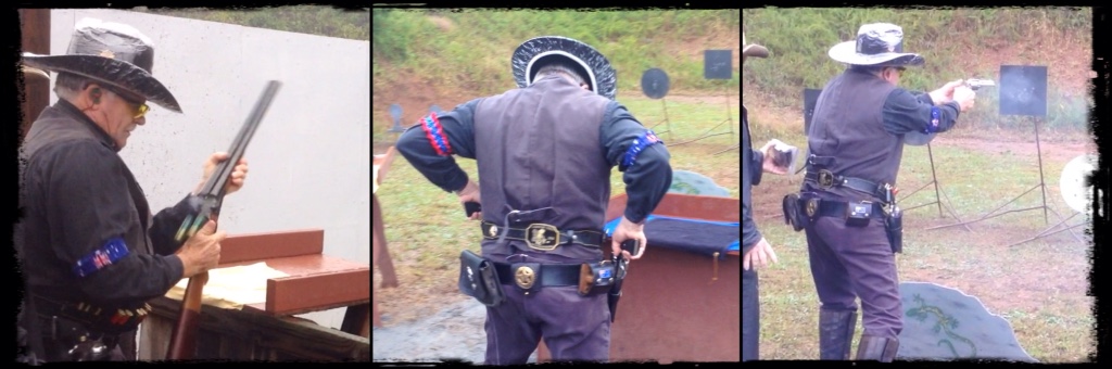 Friday, main match, Day 1, same drizzly rain. We had an awesome Posse! Posse 6 – Annabelle Bransford, Rowdy Bill, Tom Payne, James Samuel Pike, Yukon Mike, Silas Highland, Travis Spencer, Spinning Sally, Cold Brook Kid, Belle Evans, Marshal Jacobey John, Dirty Dingus Diggs, Geronimo Jim, Wild Bill Diamond, Ziggedy Zag, Jackaroo and myself.