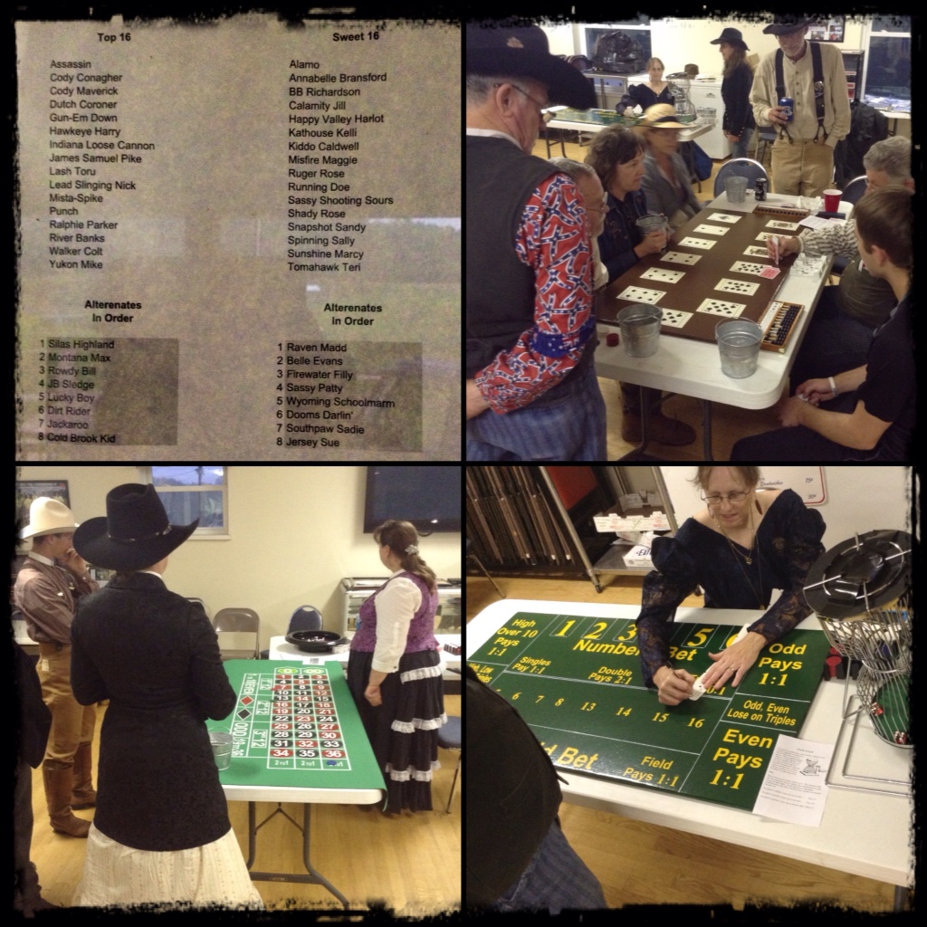After dinner in the club house, was the gambling night, raising funds for the SASS Scholarship. Try your hand at Chuck-A-Luck, Faro, and Roulette or you could just buy tickets for the raffle.