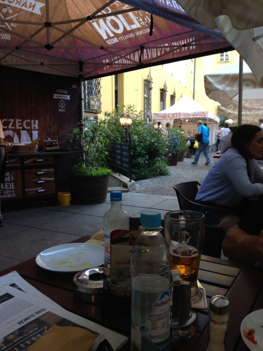 We ended up at Pivovar Národní Brewery. A great beer garden out back, so we found a spot to sit and had great steaks and salad.