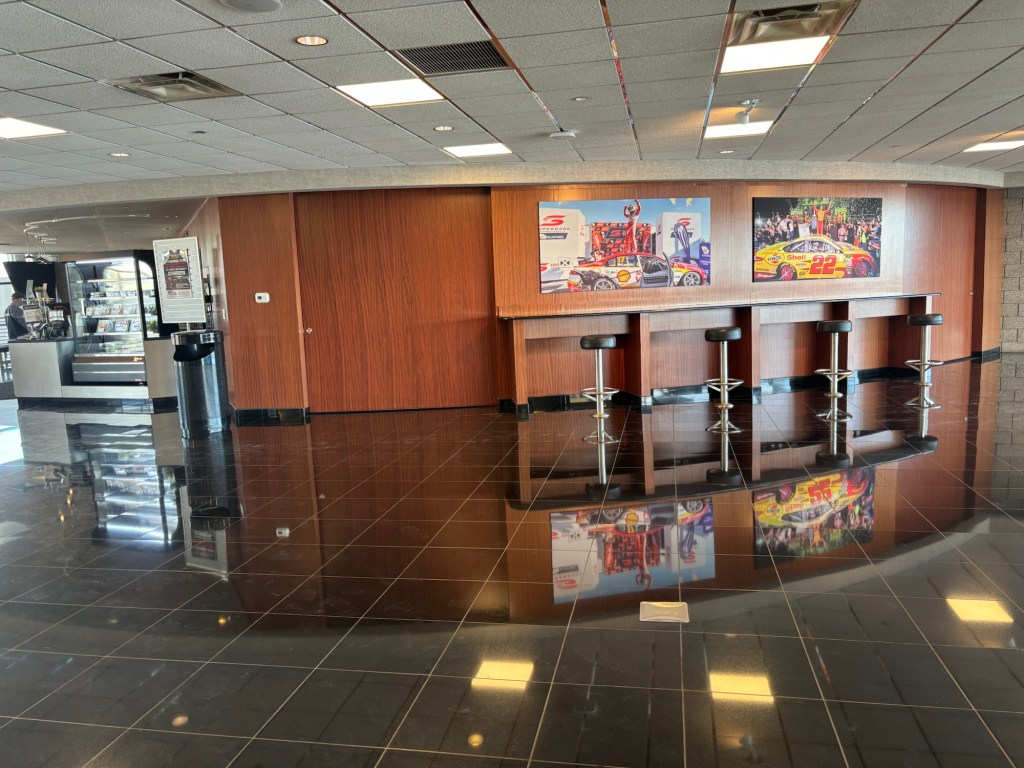 Down stairs and to the outside area and track is bricks from what were originally laid for the whole track of Indianapolis Motor Speedway.