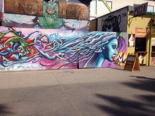 Driving through the streets of Venice to Santa Monica you’d be forgiven for thinking we were somewhere like Byron Bay (on steroids). It’s an eclectic mix of shops and street art, people walking their dogs, exercising, bike riding, skateboards etc