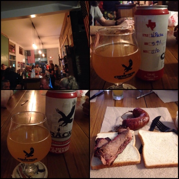 This can is Caracara’s version of a ‘growler’ a 32oz can of your choice of beer, capped and sealed right there in the pub/brewery. What a fabulous experience and great barbecue from Blacks Barbecue with Artie, Sadie and son Matt.