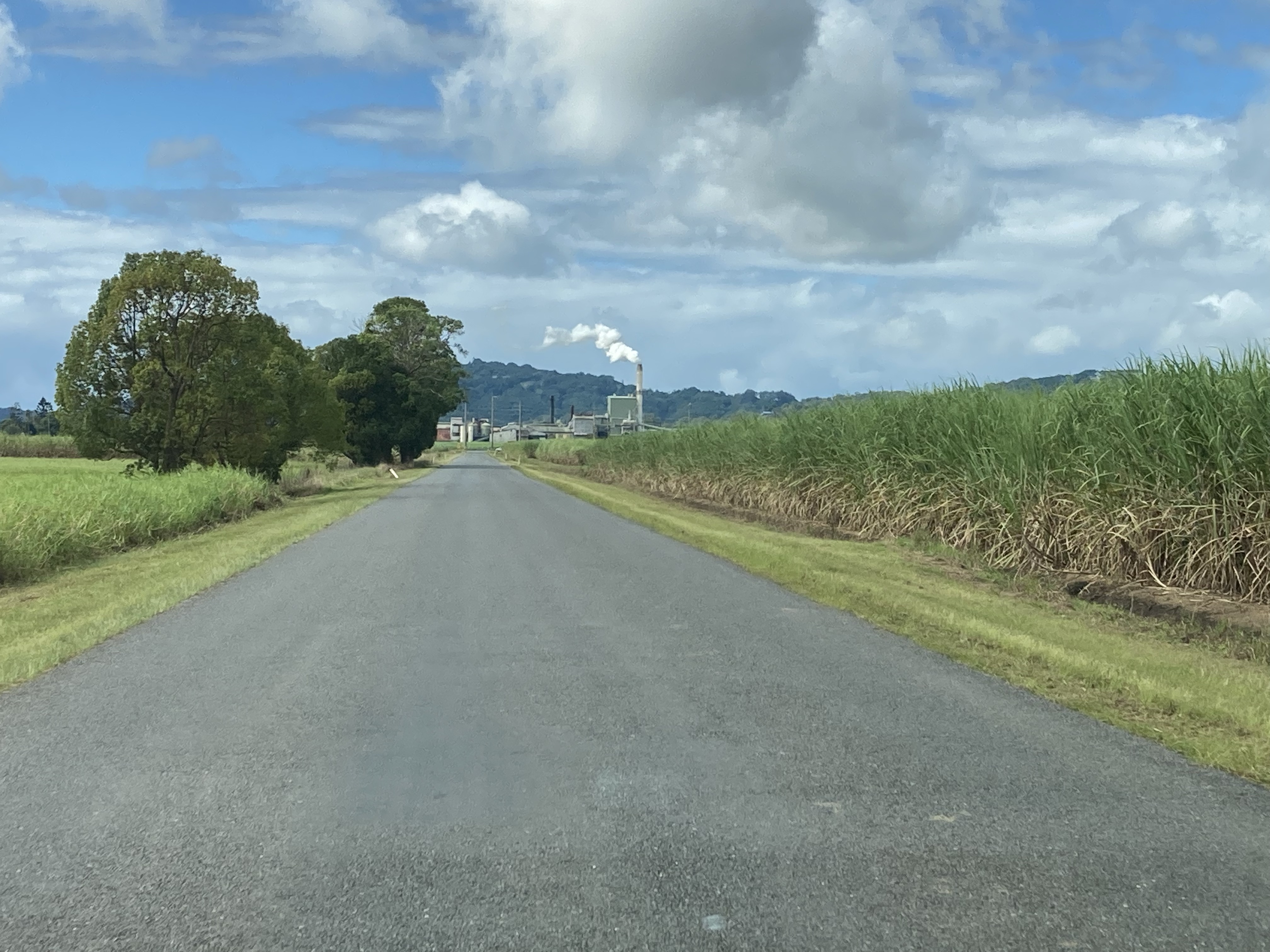 Driving through the cane fields we can smell the mill ahead. Wasn’t a very ‘while visions of sugar plums danced in their heads’ kinda moment but the mill for Sunshine Sugar operating as usual.