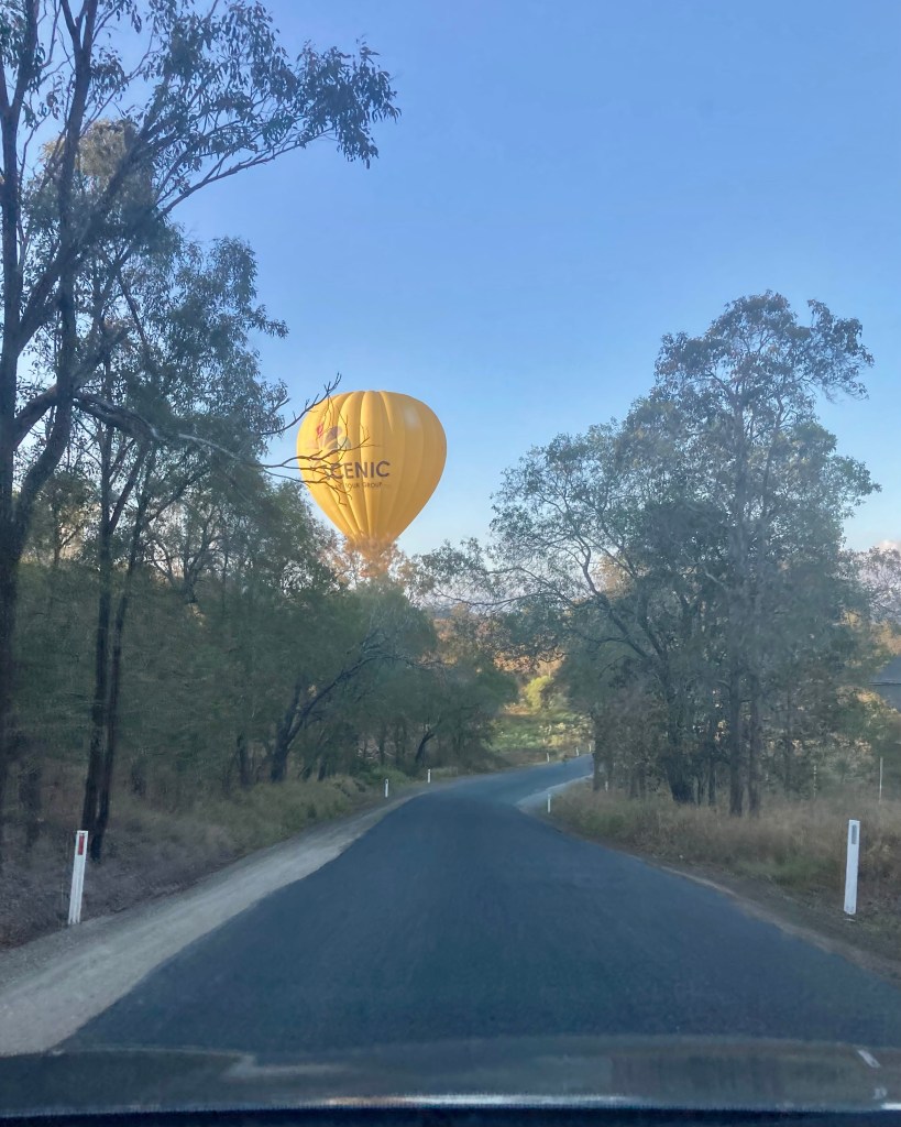 It was a spectacular start to the day heading out and over the Great Dividing Range with a perfectly clear sky, temperate weather, coffee and sighting fairly close up a hot air balloon.