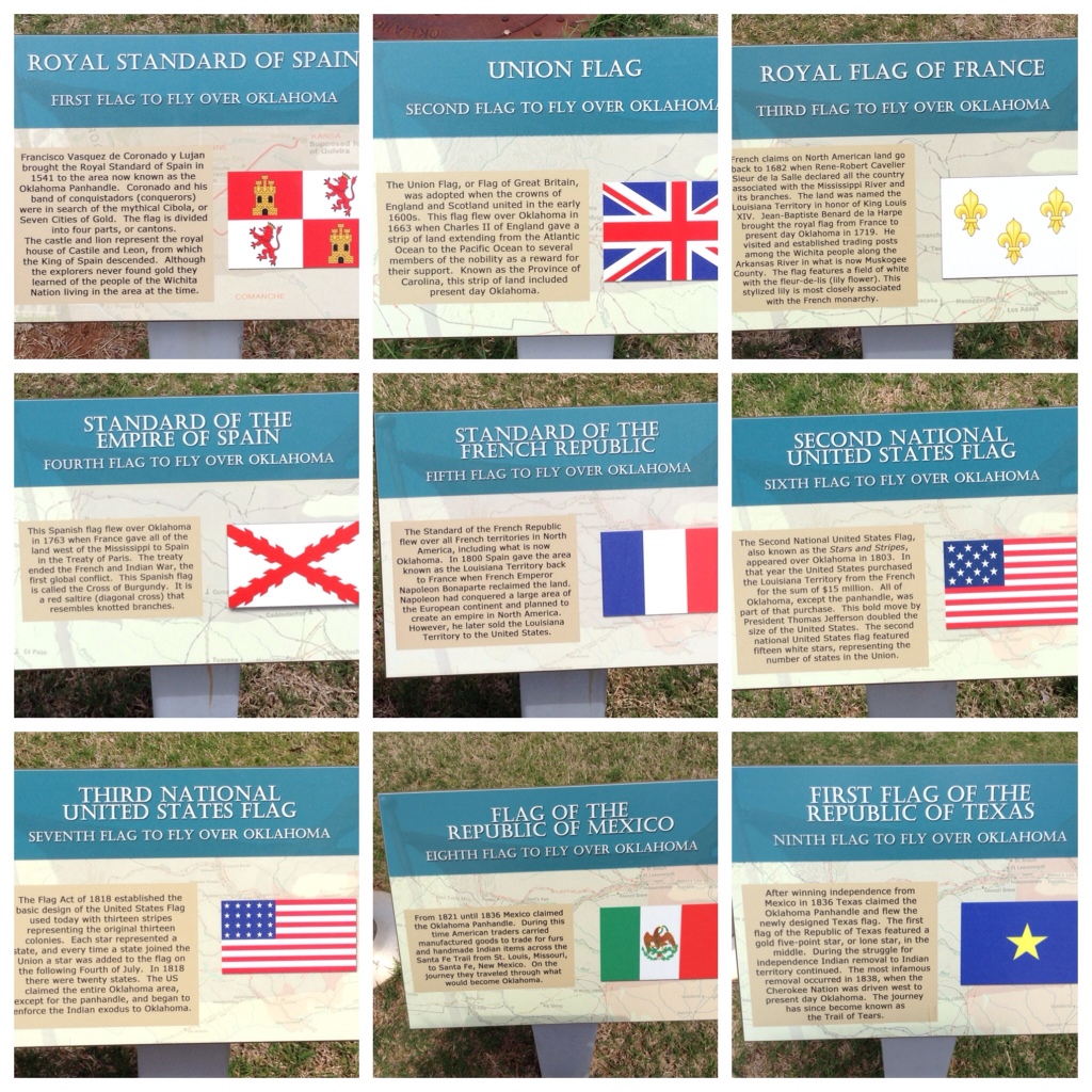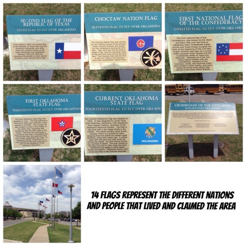 Outside both the Capitol and the History Centre are a series of flag poles, 14 in fact, with plaques that recognise each of the flags of Oklahoma before it became the flag it is today. The ones at the State Capitol weren't flying so we were happy to see them all flying when we got to the next stop.