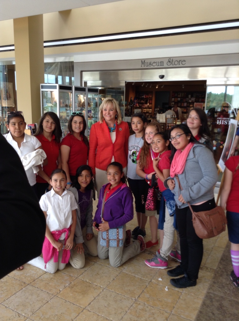 We walked in passing the Museum Store and Governor Mary Fallin, first female governor and the 27th governor of the state of Oklahoma. Here was a politician experience like I've not often seen or heard of in Australia. The kids visiting the museum ran up to her straight away and politely asked questions and if they could have their photo taken with her. She listened to each one and then asked her secretary or PA guy to take a photo as well. She had been there for a fairly large function, there was no masses of press hanging around and bumping the kids out of the way and he took photos on his camera, the kids cameras, iPhones etc and the. She talked more with them and their carers before leaving. I was a little amazed to say the least.