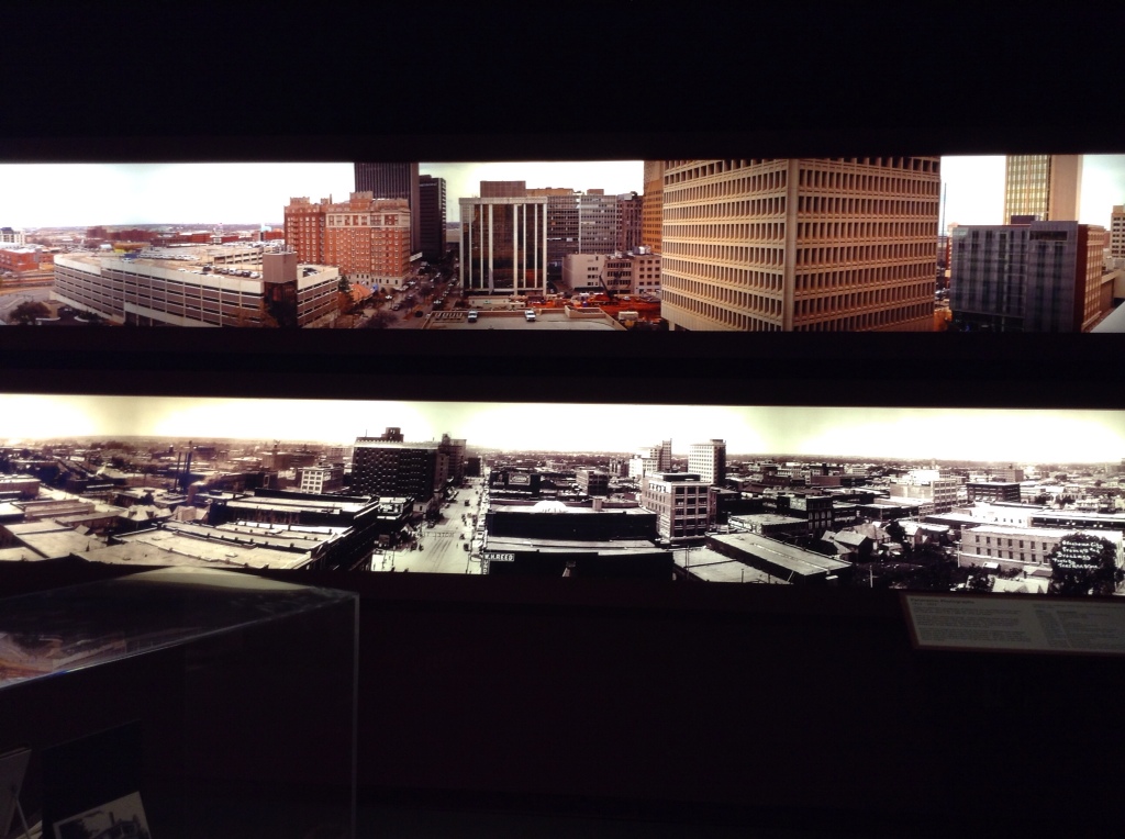 The skyline 1913 and 2013. The earlier picture found in the Century chest along with letters, items, shoes, etc