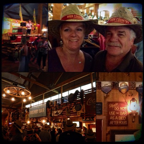 Pre entertainment as we waited in the Brumby Bar was Reg singing Australian hits from through the years and then Bluey organising people by the colour of your hat band whether you were going to barrack for (blue) Bogong High Plains or (red) Warrego Station. So off to Warrego we went.