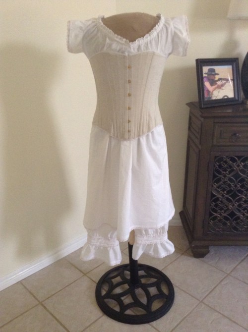 I've used a Laughing Moon pattern, a Buckaroo Bobbins pattern and now have tried the Truly Victorian undergarments pattern. I really like this one even though I made mine fairly plain compared to my Buckaroo Bobbins set, they feel really comfortable and I like the little capped sleeve look.