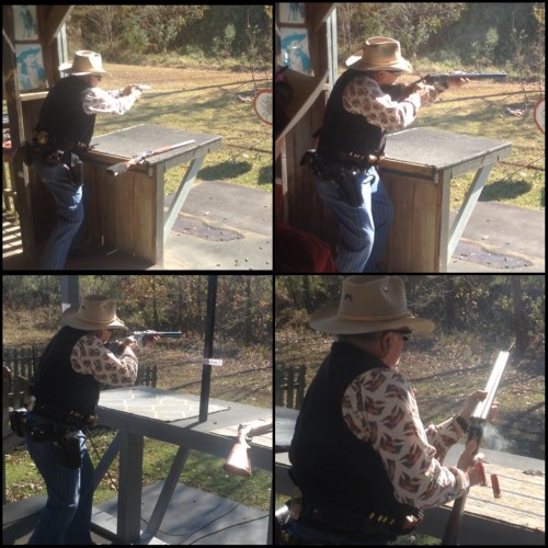 The stages are great, fair amount of movement, great sequences, good mix of single tap and multi tap varieties! We have a great posse (go Posse 7!) and everything is running smoothly. Jack is Posse Marshal, I am Deputy and we are running with great folks – Belle Vaquera, Billy Broncstomper, Agarita Annie, Neuces Slim, Pale Ale Rider, Georgia Gypsy (not shooting this match but she is kindly doing scoring for us), Fire n Fallback, Cleve, Let's Go, Bill Carson, Dr Slick, Slick's Sharpshooter, Prestidigitator, Ben T Iron, Ara Tiest, C Beaux, JD Bullett, Larry Earp, Little Joe Dalton, Valrico Kid, and Tuco Forsyth.