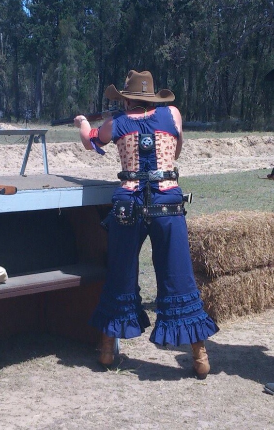 We all moved off to our respective start stages for Day 1 of the Main Match and commenced stages 2-7 with our posse of Texas Ghost, Lady Ghost, Oklahoma Dee, Kansas City Sneed, Lefty Wheeler, Krazy Legs Kay, Texas Drifter, Chisos, Red River Raider (and the ever spectacularly dressed Petticoat Parker), G W Ketchum (thanks Suzie for keeping score all weekend), Six Goin South, Kickshot, Jack and myself.