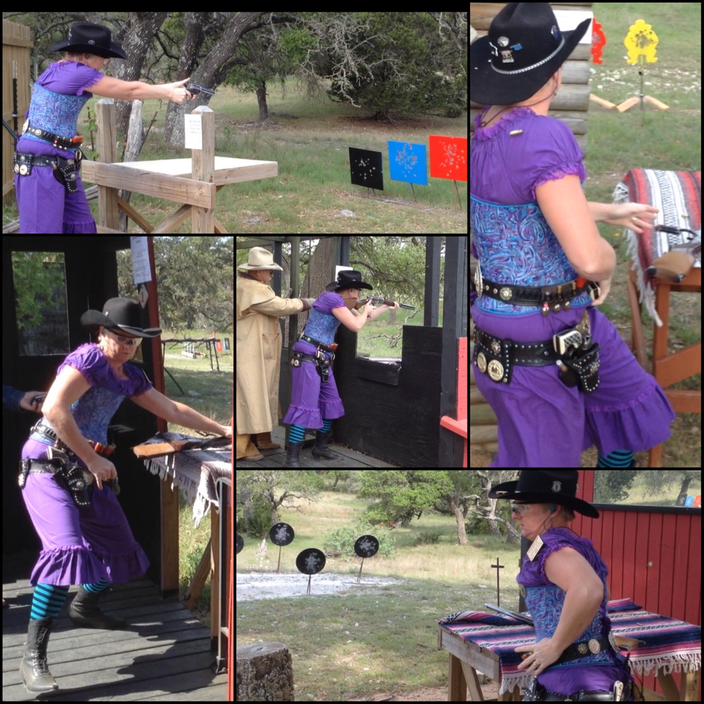Friday evening ended with an 'all in' shootout. I chose not to enter this year but set to cheer on the fellow lady shooters, opting to spot with Jack and Hurricane Deck for each shooter on the north end. Four ladies and 29 men participated with the winners being 'Ima Quickshot' and 'Matt Black'.