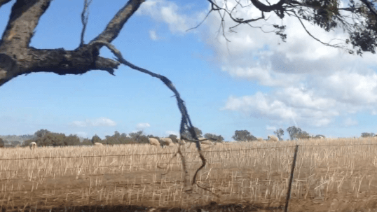 Usually we are coming through here in the Spring where it was meadows of golden glow, field after field filled with flowering canola. The fields are bare and dry, a little bit of green in some places see the sheep surviving well.