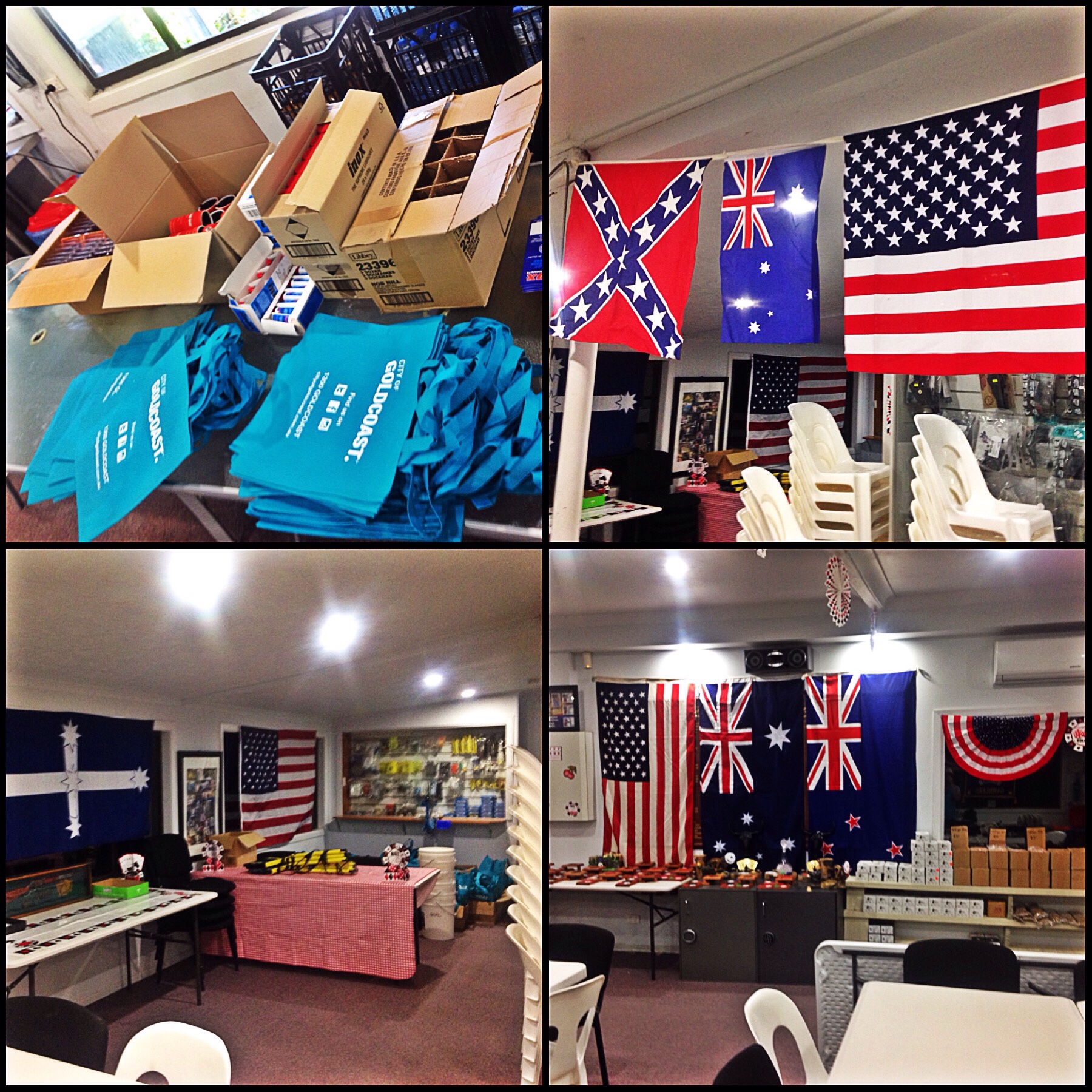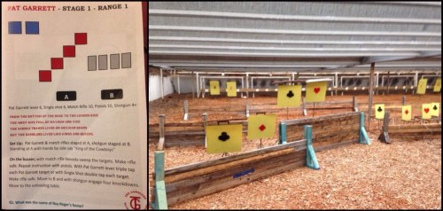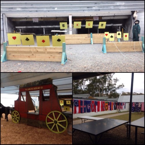 Sunday with a team of around 13 we set to getting stages ready, props in place, targets out, shooters bags packed, tables organized and the club house decorated with flags, Gamblers paraphernalia and more.