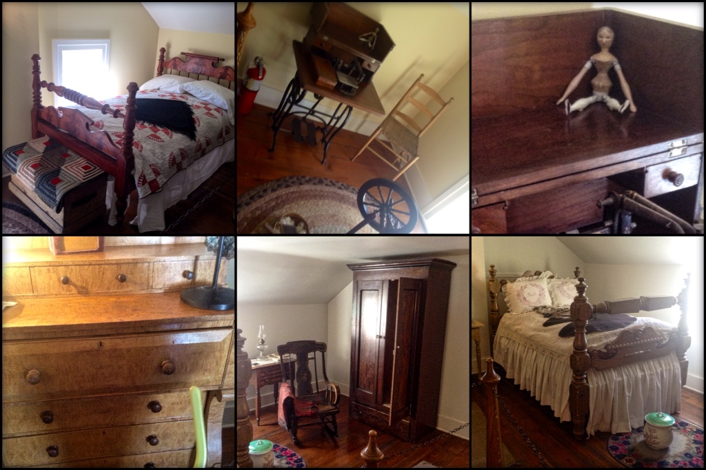 In his room is the chair that his portrait was taken in. The feet of the chair were lions feet – he was known as the lion of the lord. The pineapple on the back of the chair signifies hospitality. Check out this chair! Pine of course but upholstered in horse hair! Extreme resourcefulness.