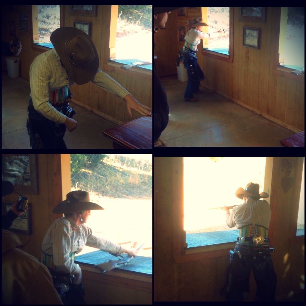 Friday evening ended with an 'all in' shootout. I chose not to enter this year but set to cheer on the fellow lady shooters, opting to spot with Jack and Hurricane Deck for each shooter on the north end. Four ladies and 29 men participated with the winners being 'Ima Quickshot' and 'Matt Black'.