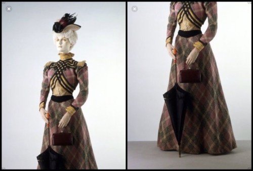 The gown shown, belonged to a Miss Estell Maxim. She was the school ma’am n Tombstone circa.1884. From the photo’s it appears to be of a light silver grey silk with a bronze jacquard.